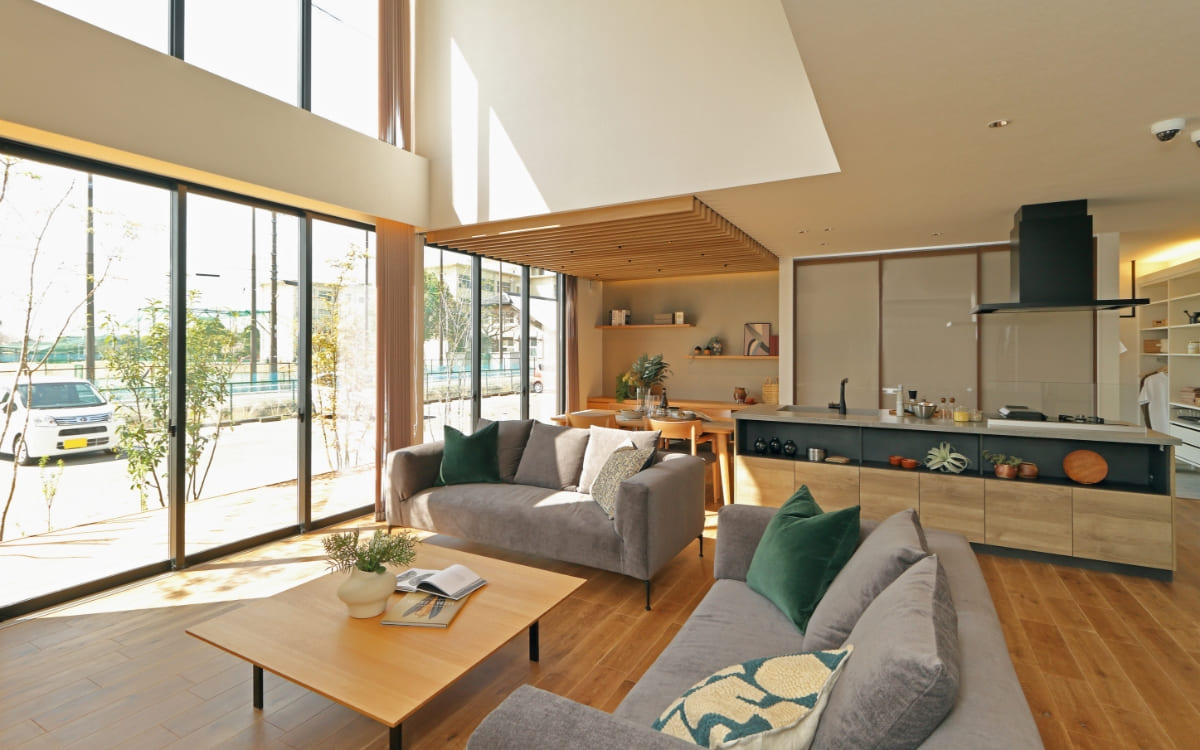 アキュラホームが提案する吹抜け・柱無しの伸びやかな設計で実現された
